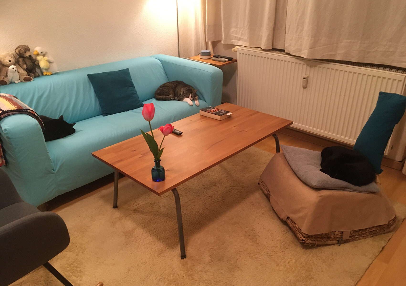 Den neuen Nachbarn habe ich Unrecht getan. Sie haben durchaus versucht sich vorzustellen, trafen aber niemanden zu Hause an, mich schließlich gestern. Wir haben einen spontanen Kaffee miteinander getrunken, der sich dann ganz entspannt ziemlich lange hinzog, dem Zeitdruck zum Trotz. Medizinstudenten im Doppelstress – zwei Wohnungen auflösen, eine einrichten, und nächste Woche geht das Semester wieder los. Sie sind klug, erfrischend gradlinig und sympathisch.